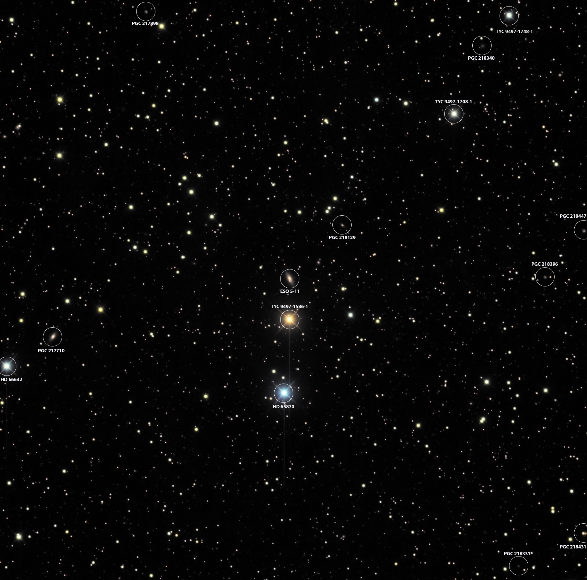 ESO 5-11 Field Centered on ESO 5-11, Annotated Field Centered on ESO 5-11 (no annotation) PGC 218447 and PGC 218396 PGC 218340 PGC 218331 and PGC 218431 PGC 218129 PGC 217898 PGC 217710 ESO 5-11